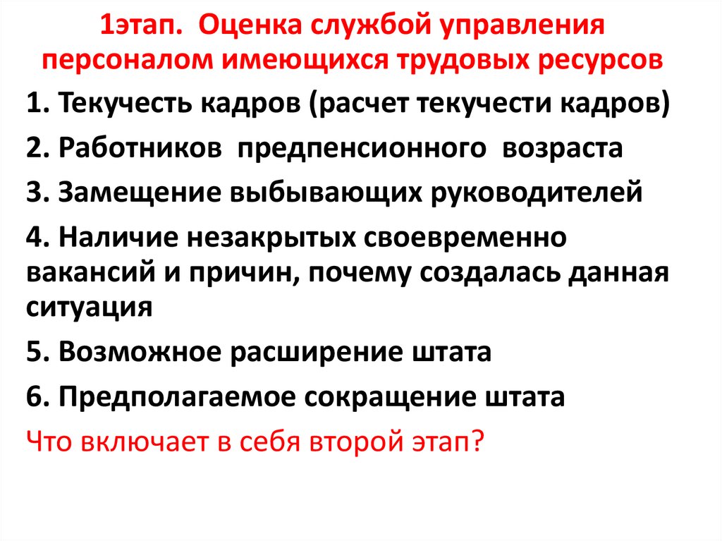 6. 1этап. Оценка службой управления персоналом имеющихся трудовых ресурсов