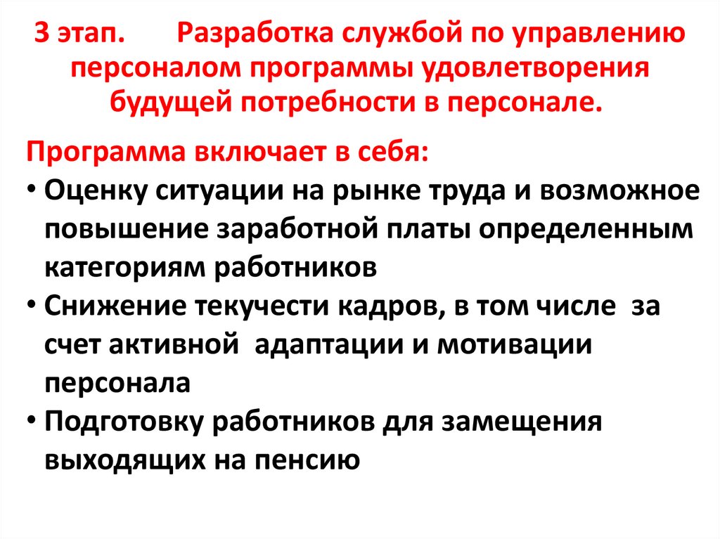 8. 3 этап. Разработка службой по управлению персоналом программы удовлетворения будущей потребности в персонале.