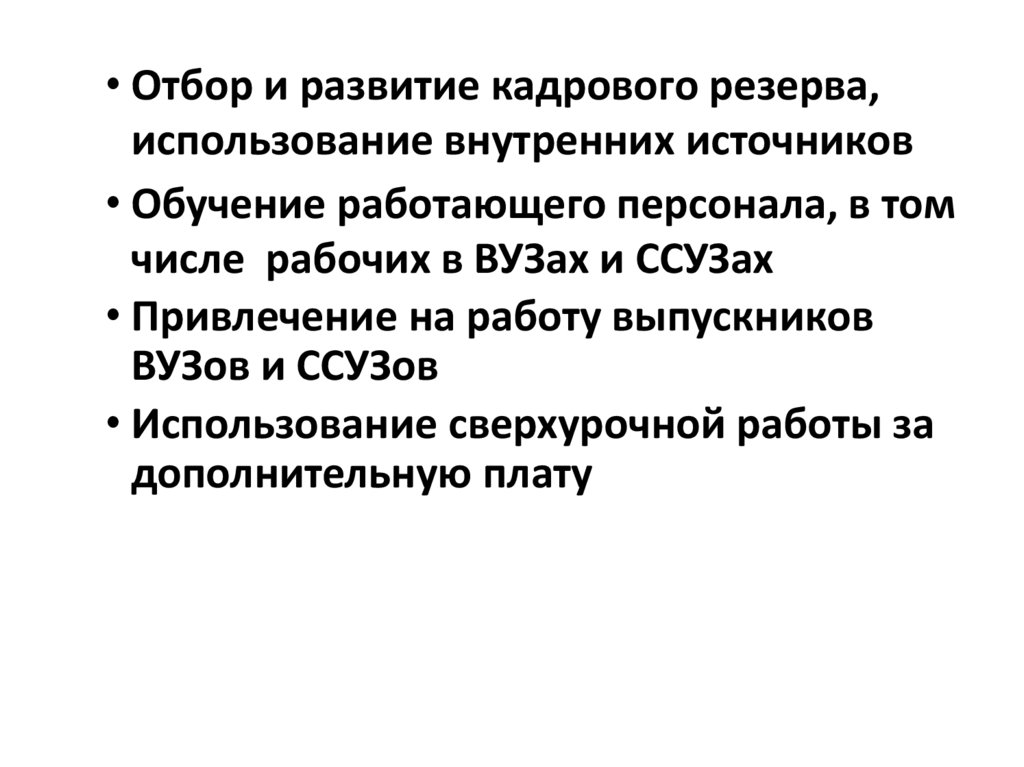 • Постепенное безболезненное сокращениеперсонала путем сокращения вакантных