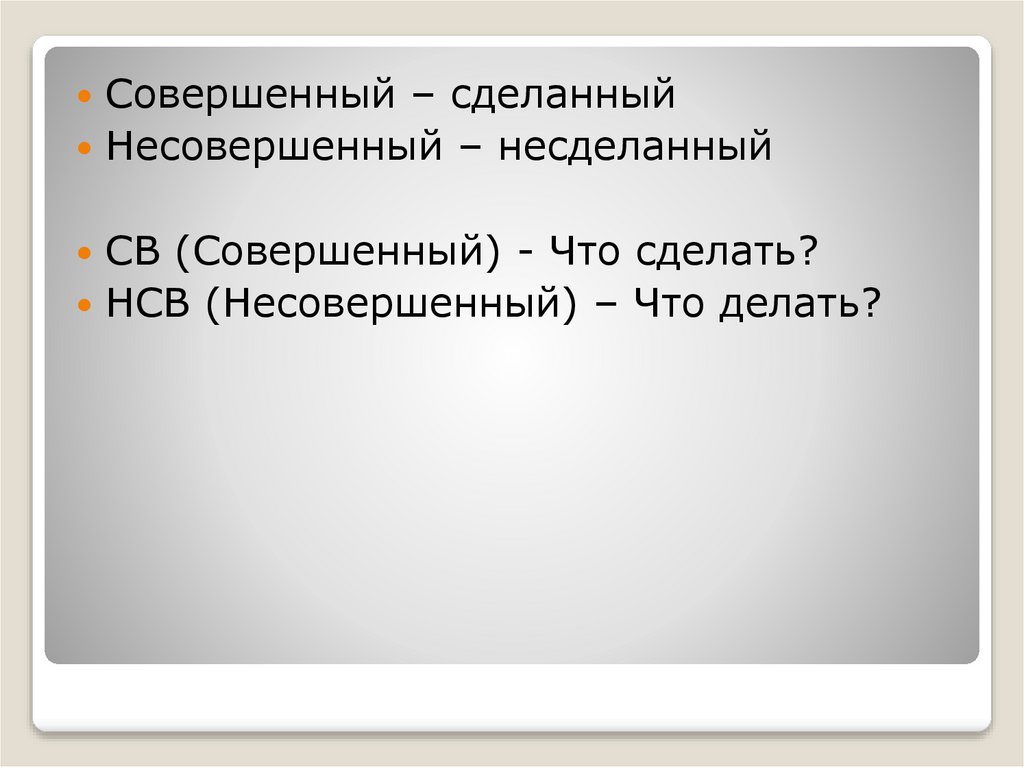 Совершенный – сделанныйНесовершенный – несделанный