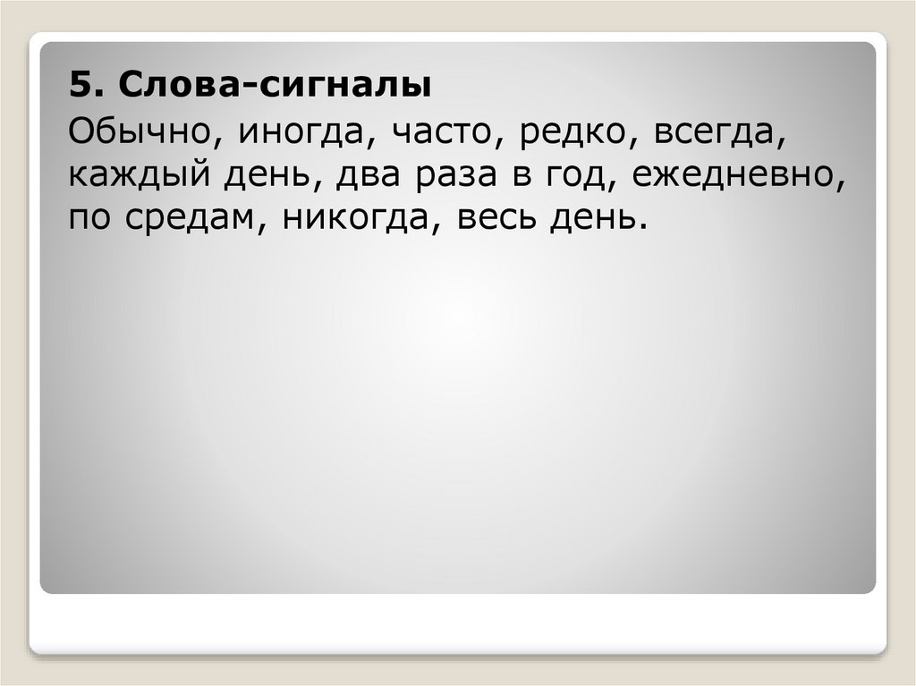 5. Слова-сигналыОбычно, иногда, часто, редко, всегда,