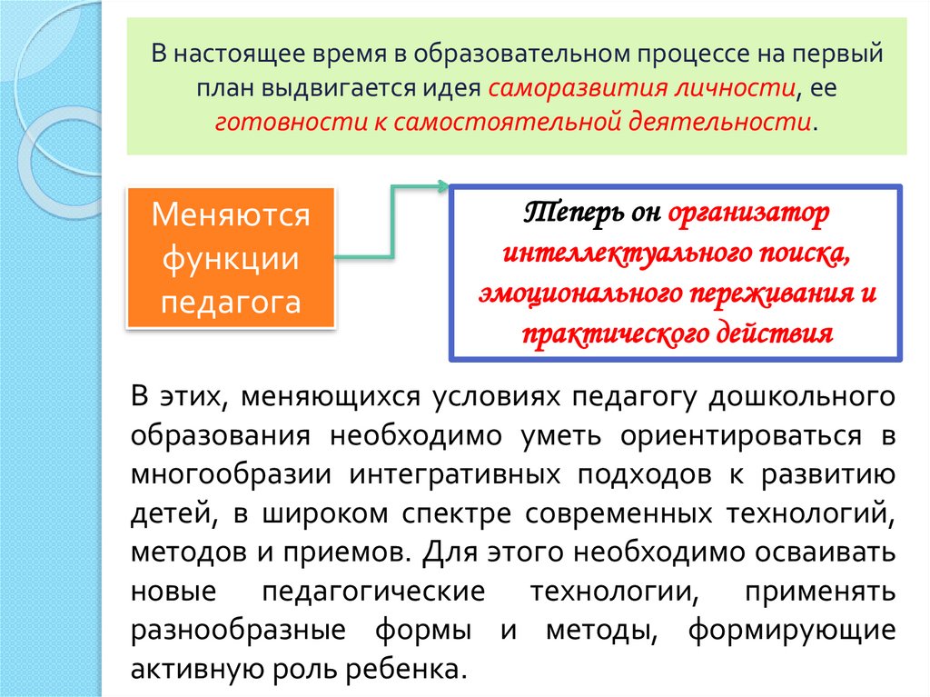 В этих, меняющихся условиях педагогу дошкольного