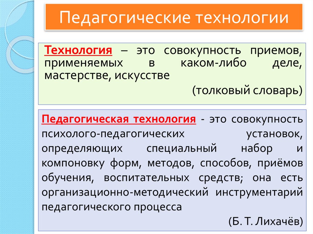 педагогической технологии:
