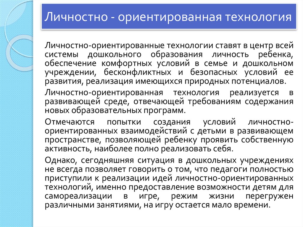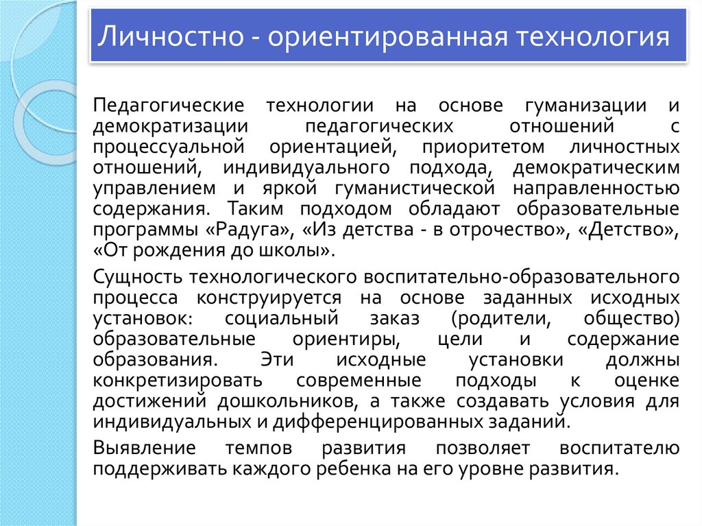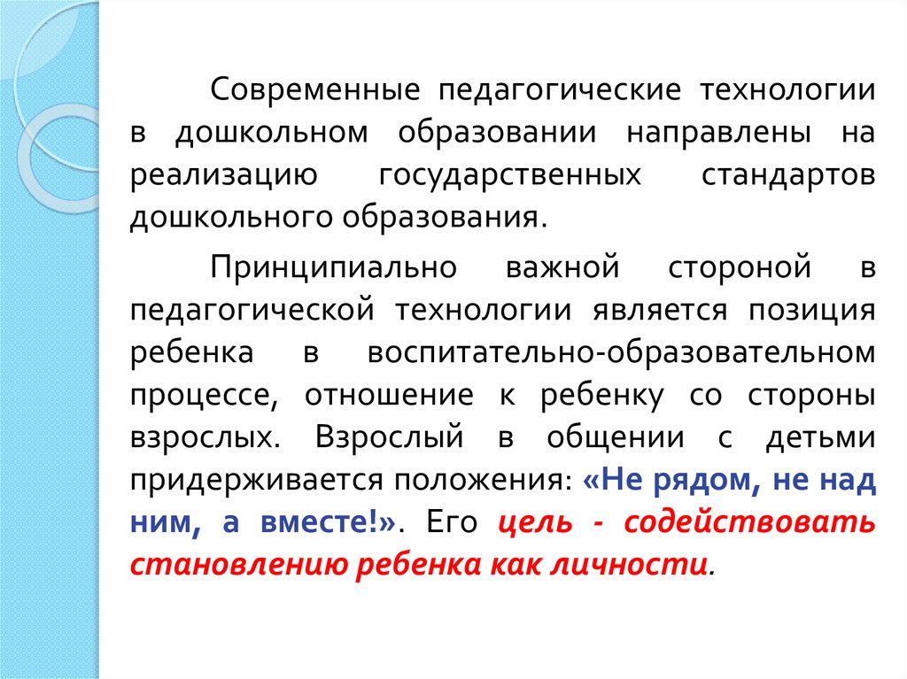 Современные педагогические технологиив дошкольном образовании направлены на