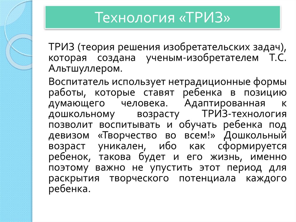 Технология «ТРИЗ»ТРИЗ (теория решения изобретательских задач),