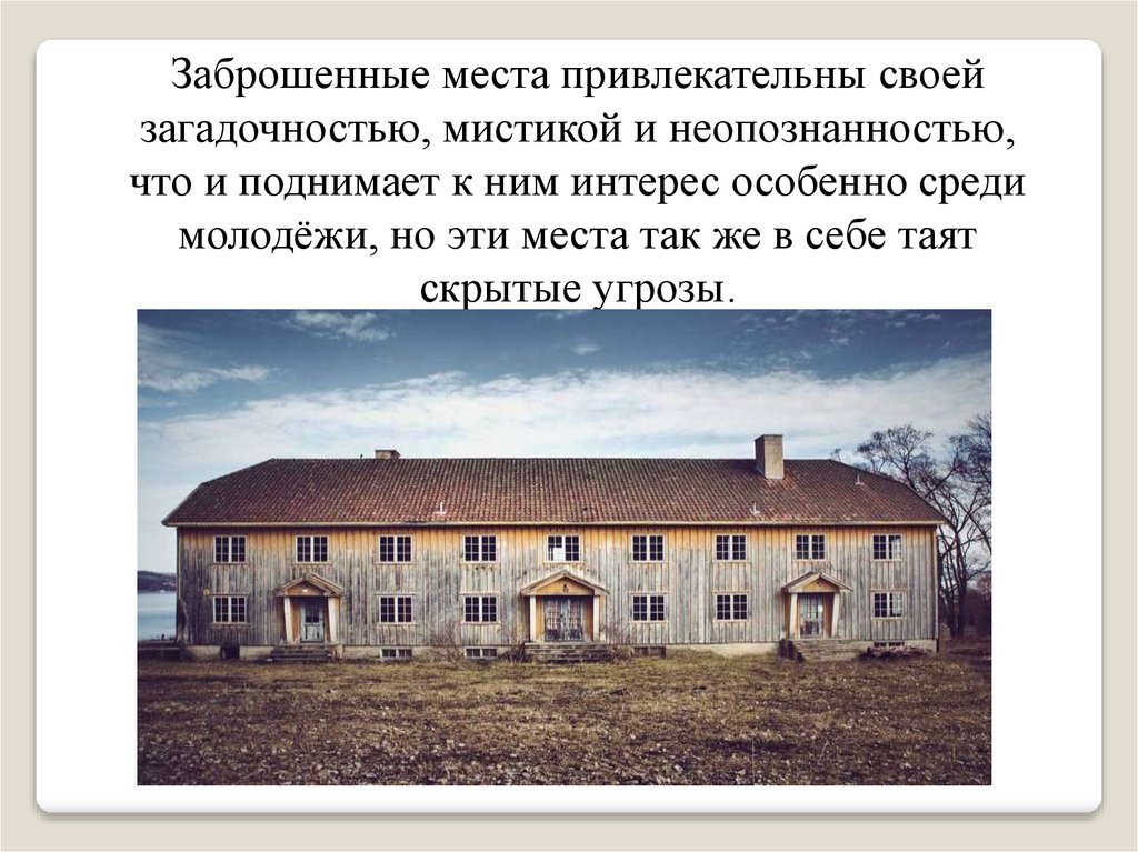Заброшенные места привлекательны своейзагадочностью, мистикой и неопознанностью,