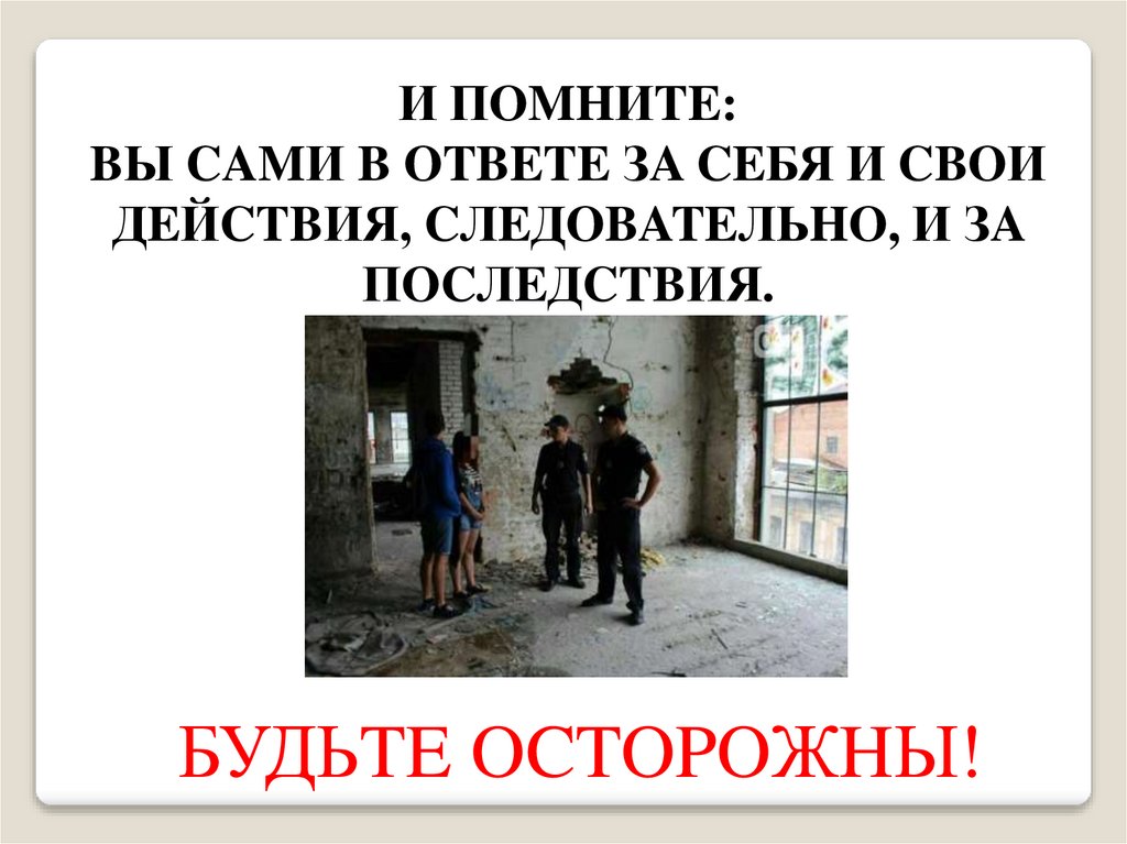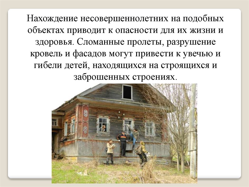 Нахождение несовершеннолетних на подобныхобъектах приводит к опасности для их жизни и