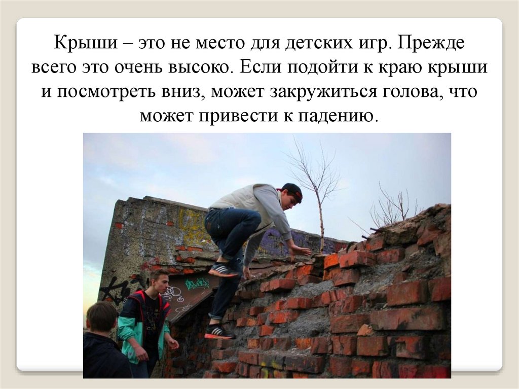 Крыши – это не место для детских игр. Преждевсего это очень высоко. Если подойти к краю крыши