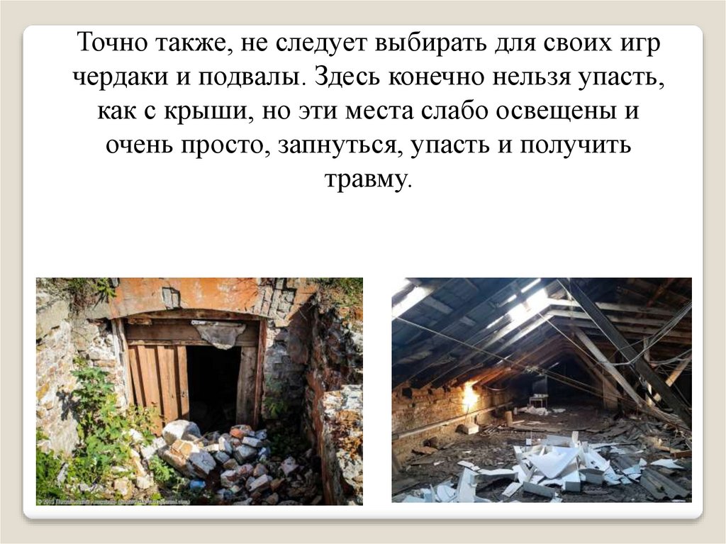 Точно также, не следует выбирать для своих игрчердаки и подвалы. Здесь конечно нельзя упасть,