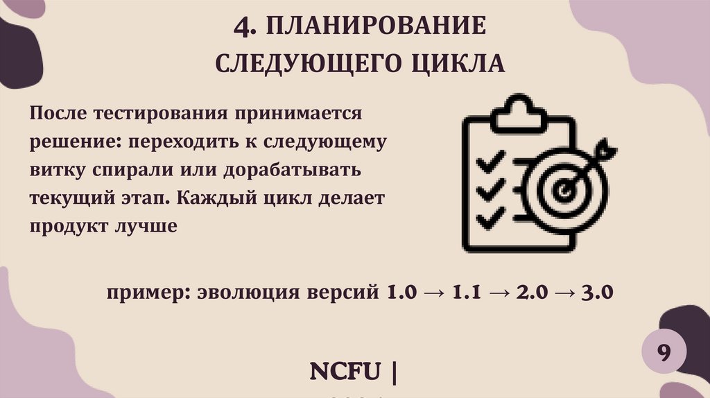 (итерациях), на каждом из которых уточняются требования, анализируются риски,