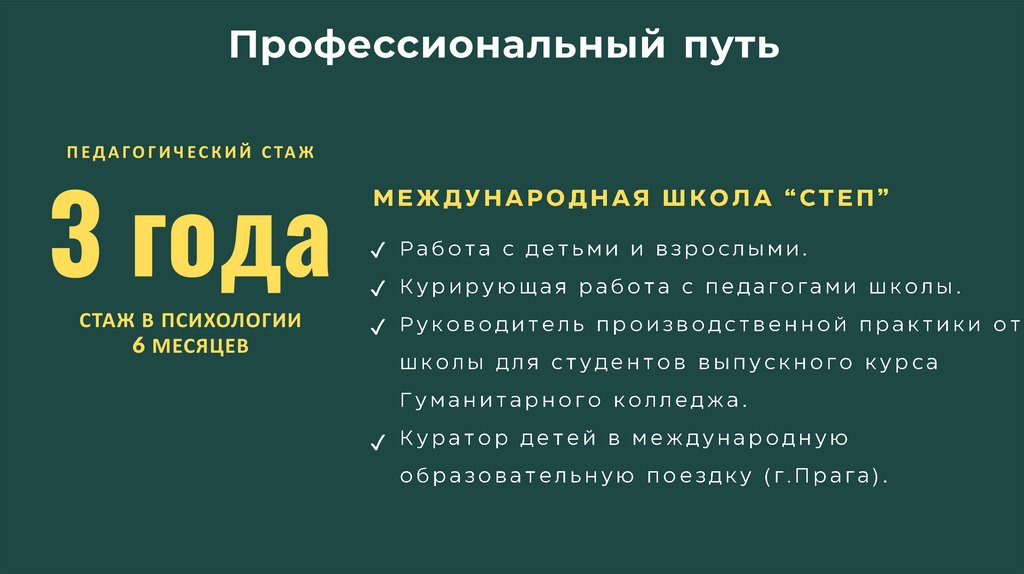 Профессиональный путьП Е Д А Г О Г И Ч Е С К И Й С ТА Ж