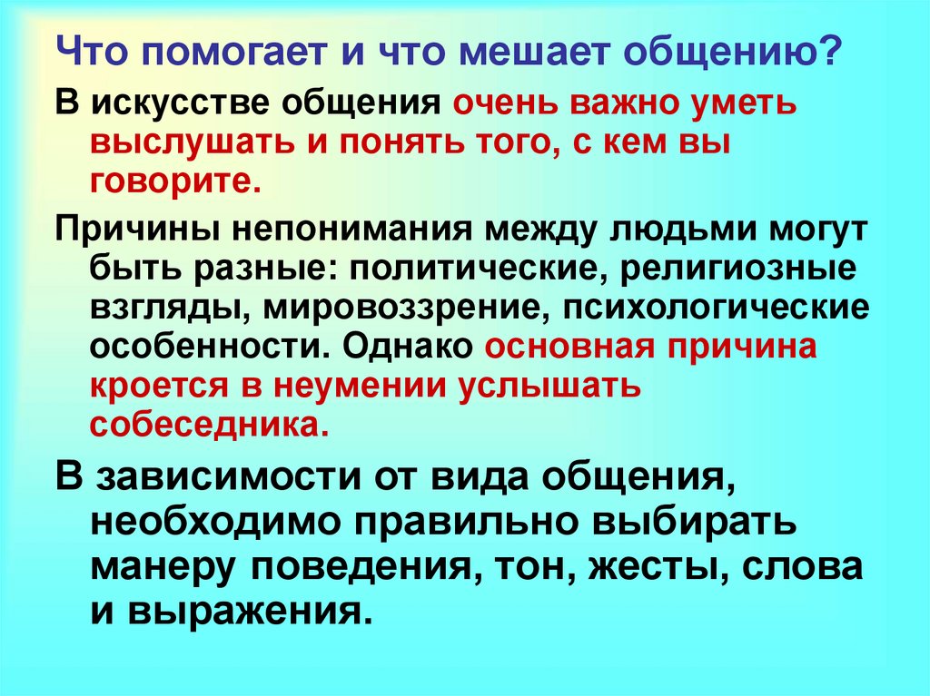 Что помогает и что мешает общению?В искусстве общения очень важно уметь