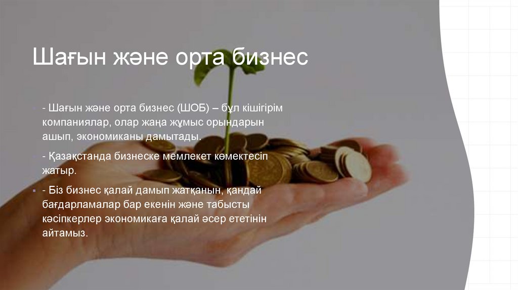 Шағын және орта бизнес- Шағын және орта бизнес (ШОБ) – бұл кішігірім