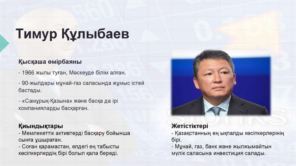 Тимур ҚұлыбаевҚысқаша өмірбаяны