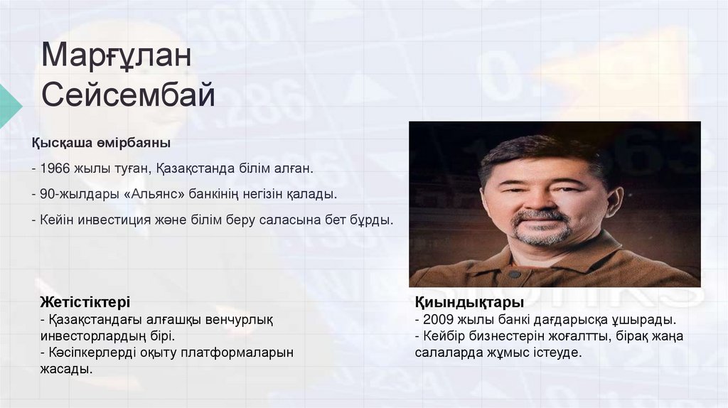 - 90-жылдары «Альянс» банкінің негізін қалады.