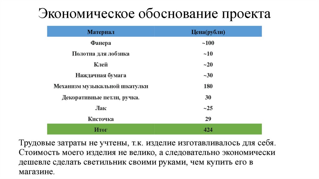 Трудовые затраты не учтены, т.к. изделие изготавливалось для себя.