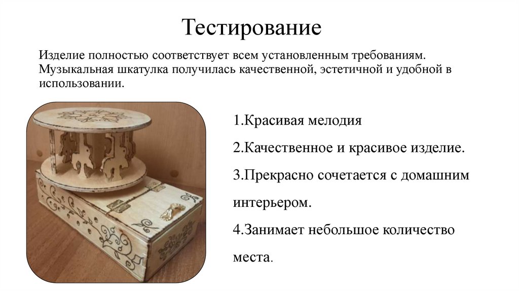 Музыкальная шкатулка получилась качественной, эстетичной и удобной в