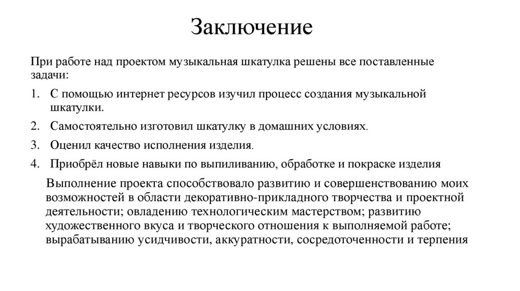 ЗаключениеПри работе над проектом музыкальная шкатулка решены все поставленные
