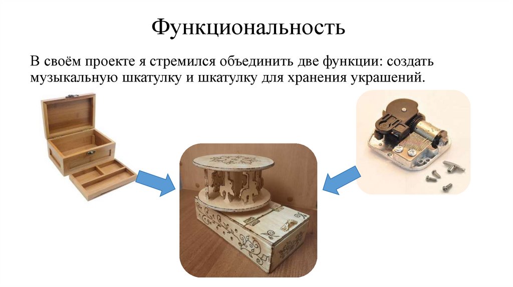 музыкальную шкатулку и шкатулку для хранения украшений.