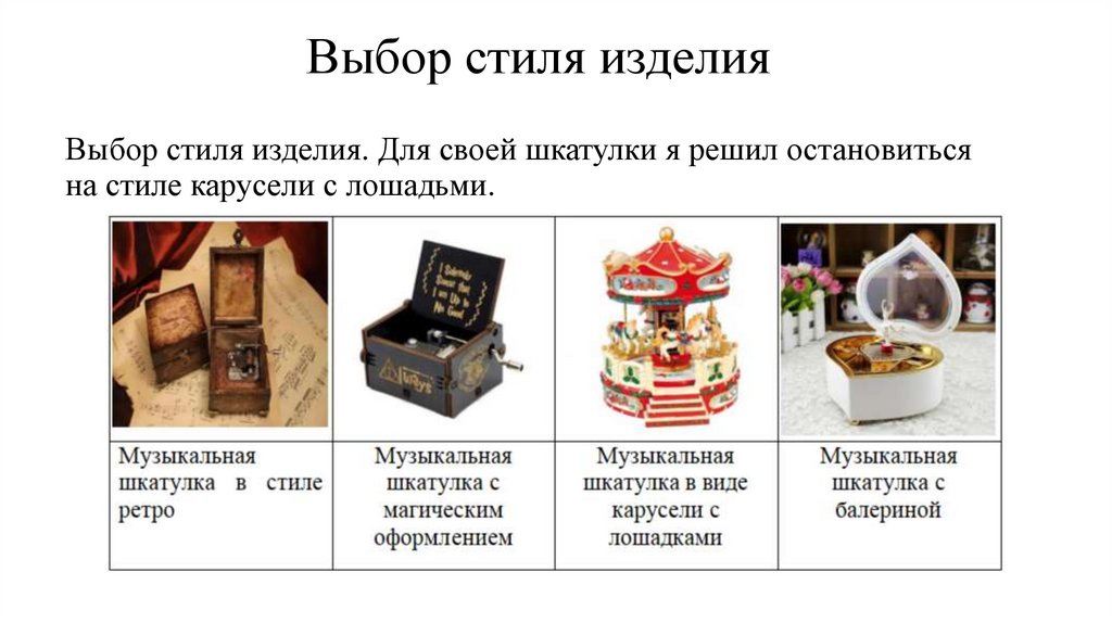 Выбор стиля изделияВыбор стиля изделия. Для своей шкатулки я решил остановиться