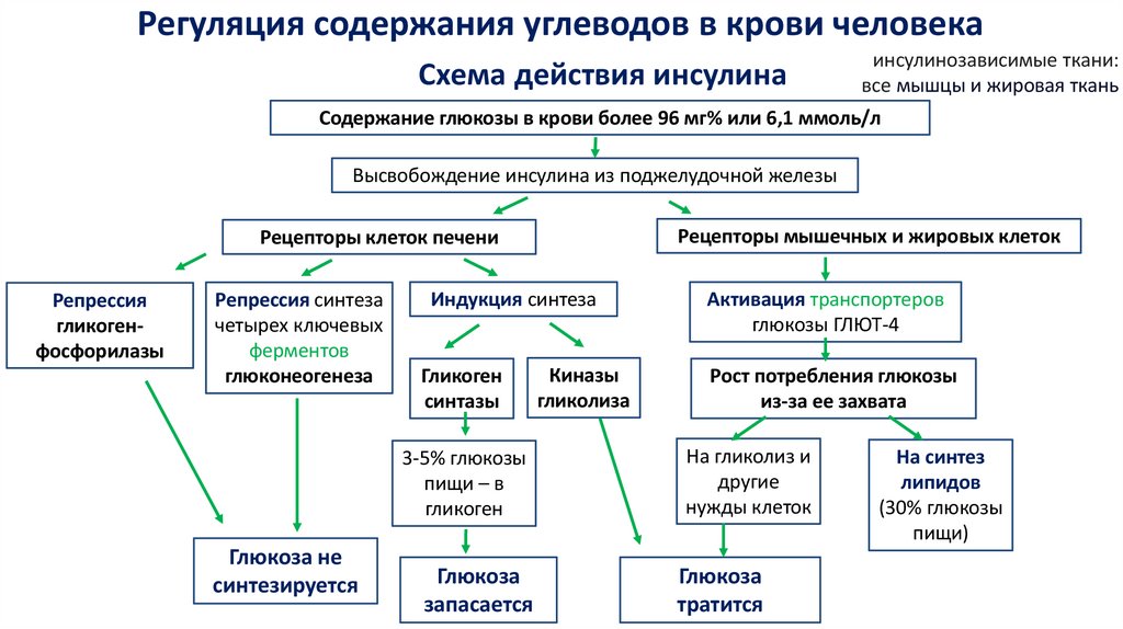 Регуляция содержания углеводов в крови человекаСхема действия инсулина