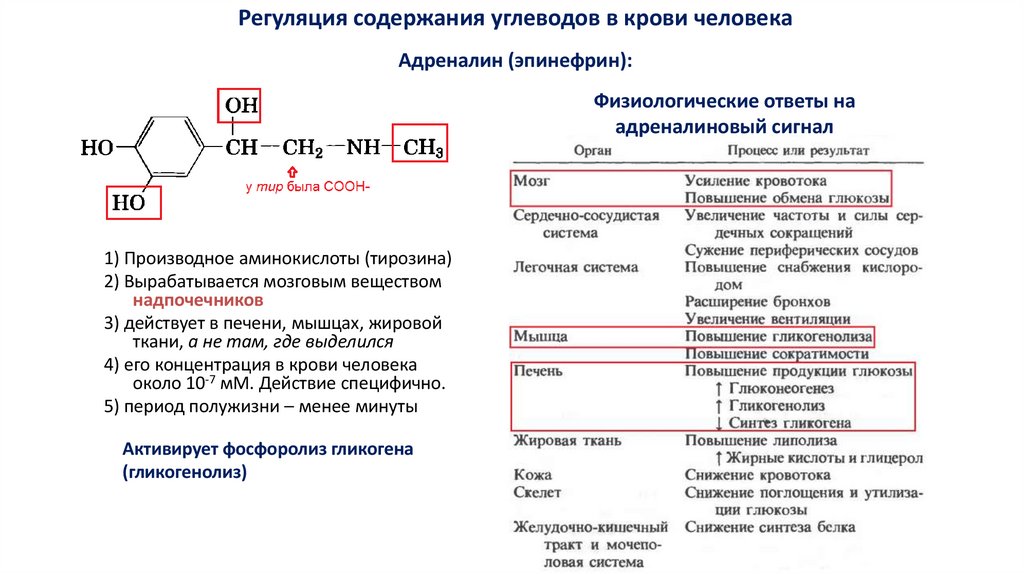 потребности глюкозы (при голодании, стрессе и т.д.)