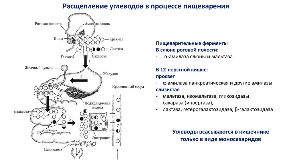 Расщепление углеводов в процессе пищеваренияПищеварительные ферменты