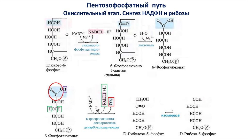 Пентозофосфатный путьОкислительный этап. Синтез НАДФН и рибозы