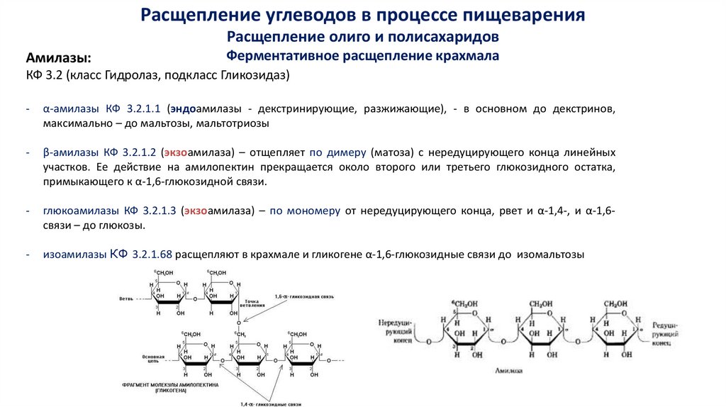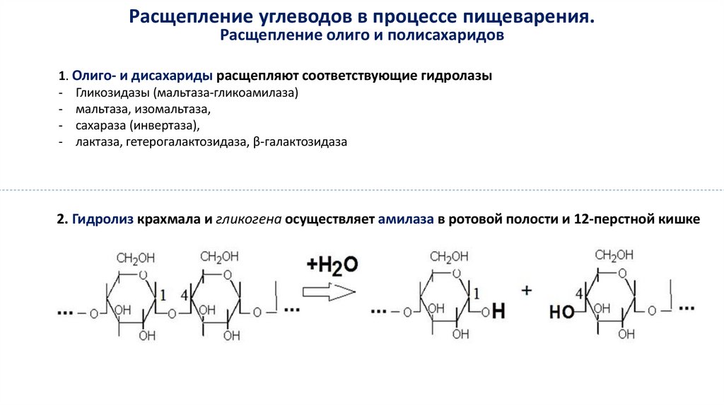 Расщепление углеводов в процессе пищеварения.Расщепление олиго и полисахаридов