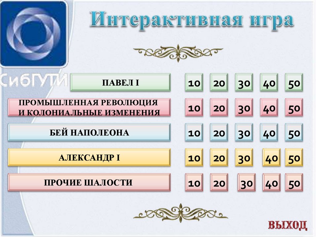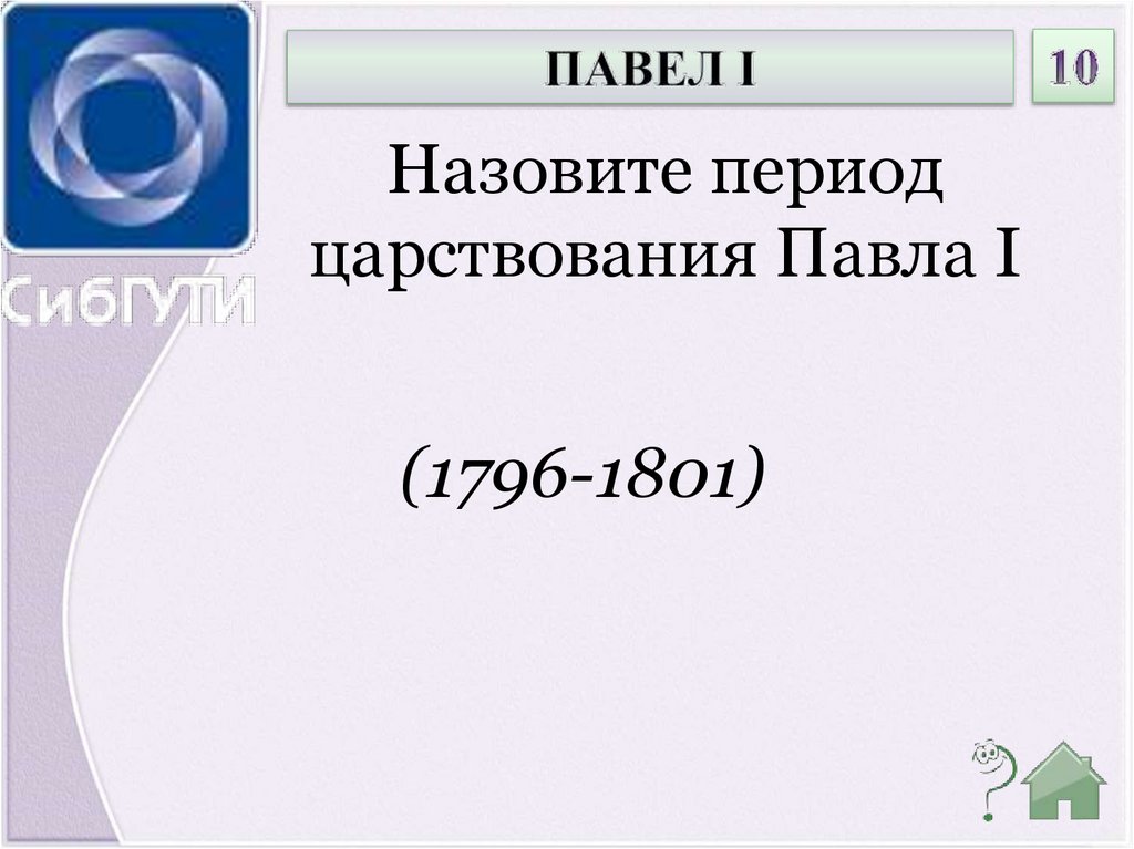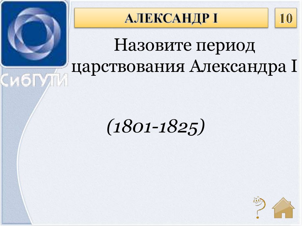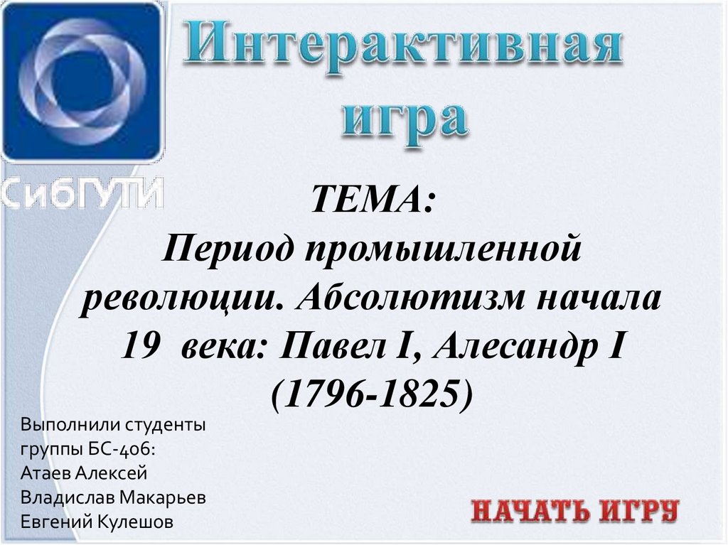 Период промышленной революции. Абсолютизм начала 19 века: Павел I, Алесандр I (1796-1825). Интерактивная игра