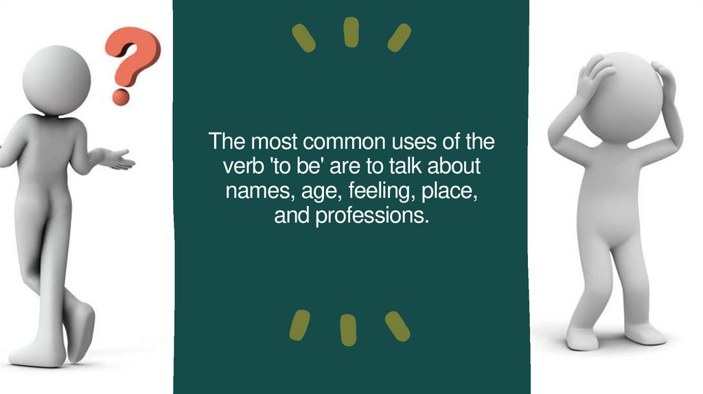 The most common uses of theverb 'to be' are to talk about
