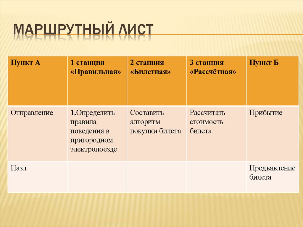 МАРШРУТНЫЙ ЛИСТПункт А
