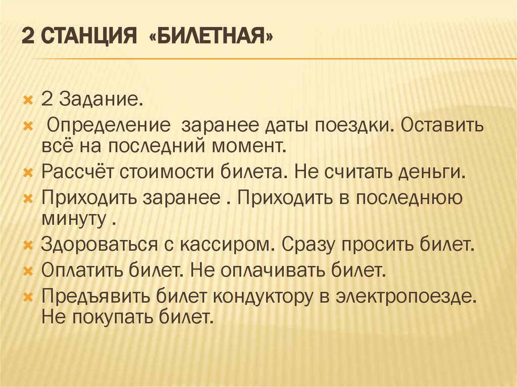 2 СТАНЦИЯ «БИЛЕТНАЯ»2 Задание.