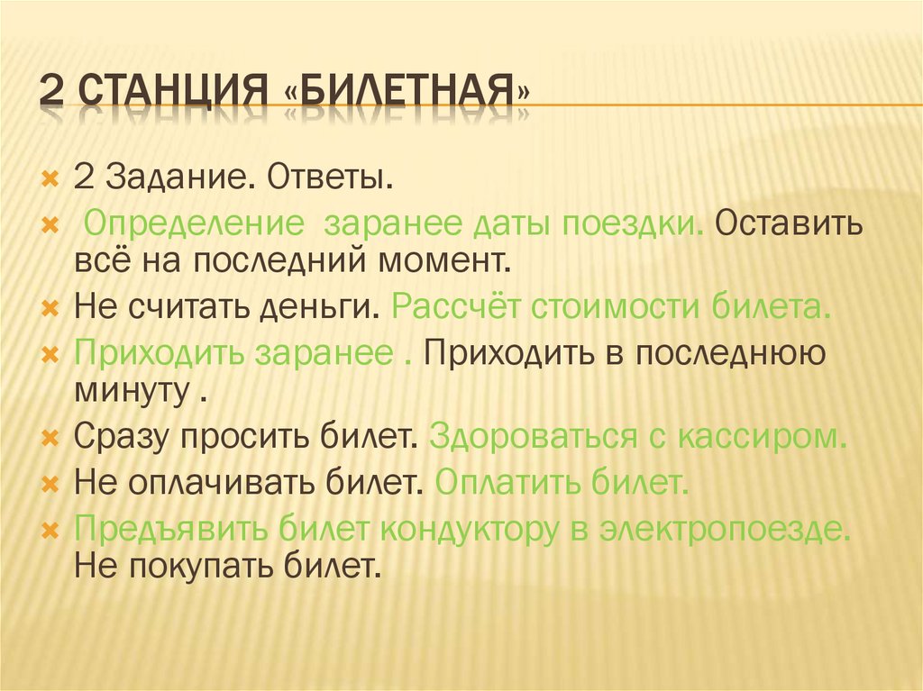 2 СТАНЦИЯ «БИЛЕТНАЯ»2 Задание. Ответы.