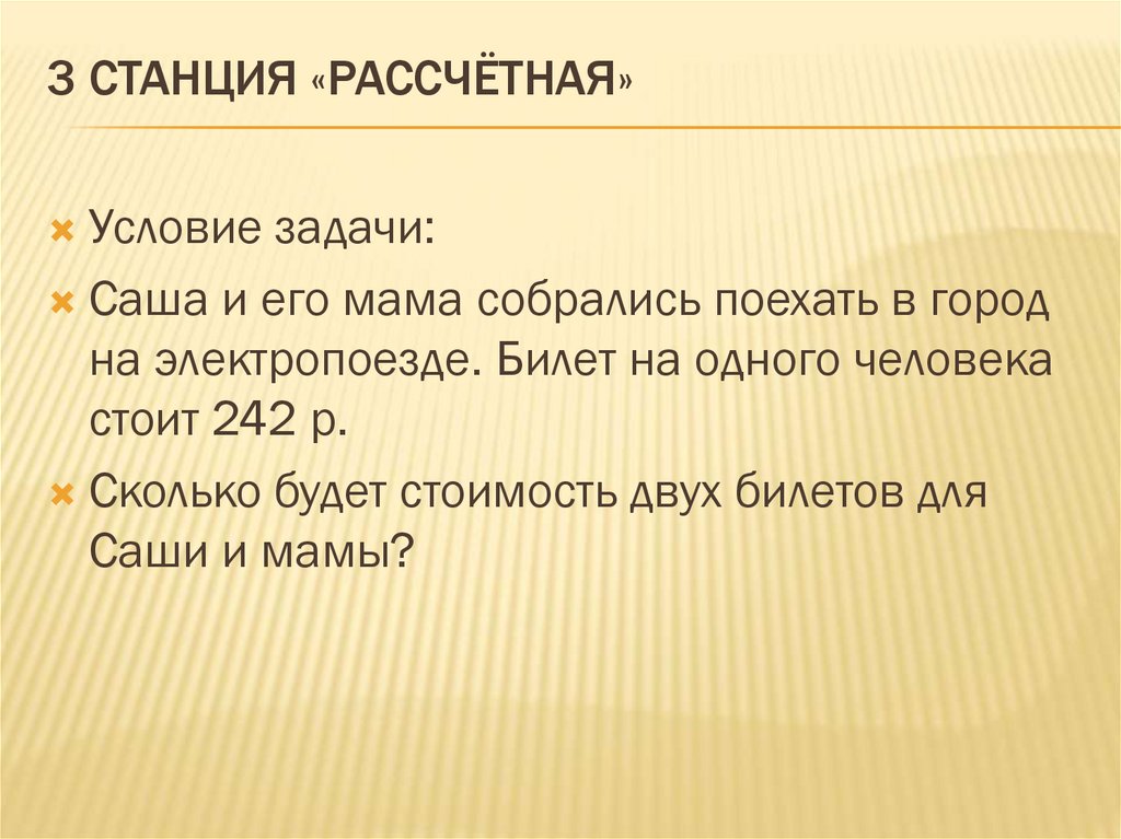 3 СТАНЦИЯ «РАССЧЁТНАЯ»Условие задачи: