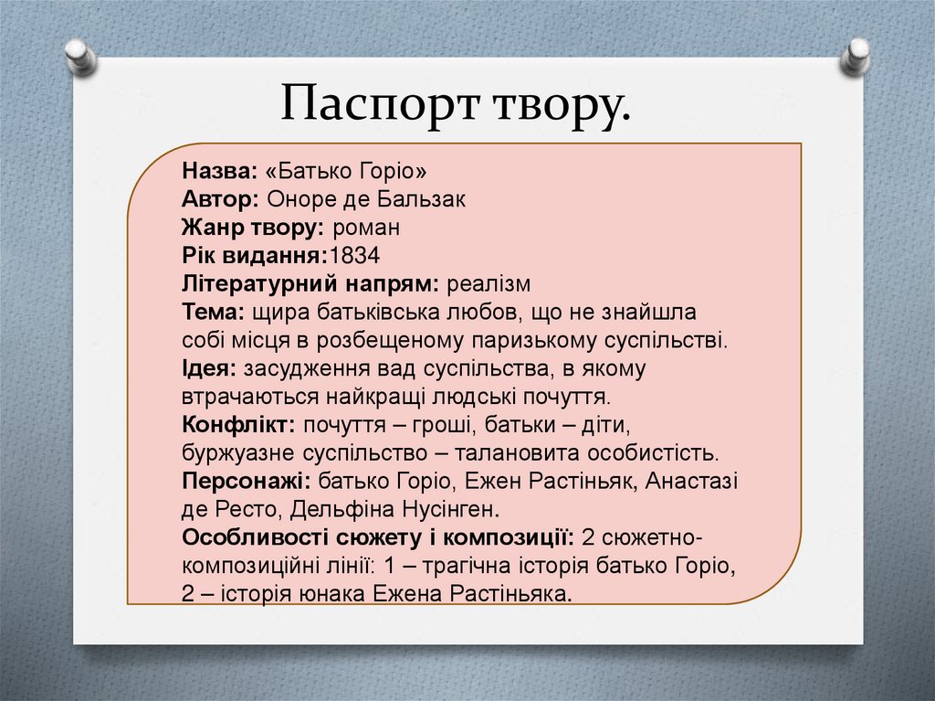 Зображення руйнівної влади грошей в романі Оноре де Бальзака “Батько Горіо”