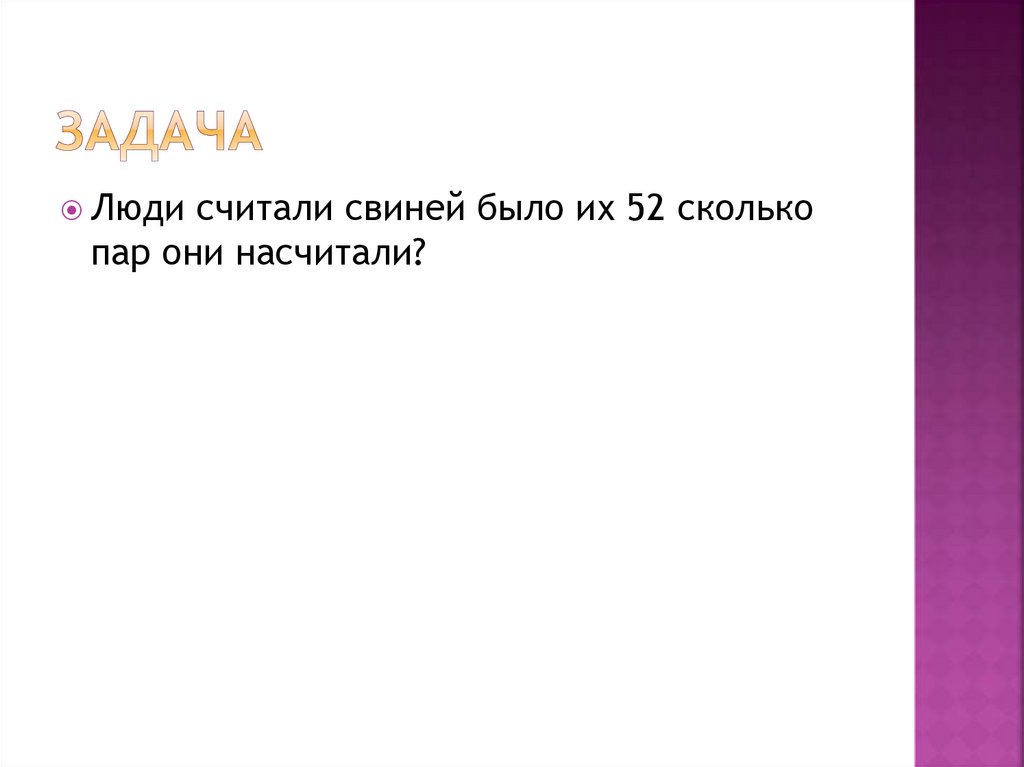Люди считали свиней было их 52 сколькопар они насчитали?