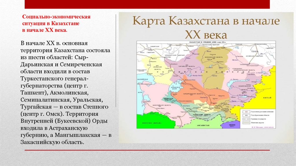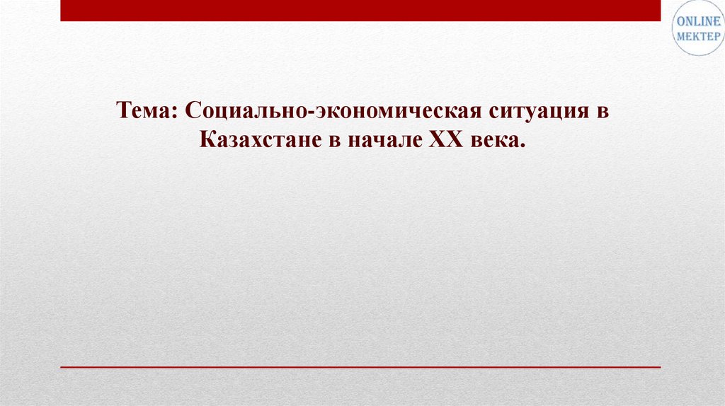 Тема: Социально-экономическая ситуация вКазахстане в начале ХХ века.