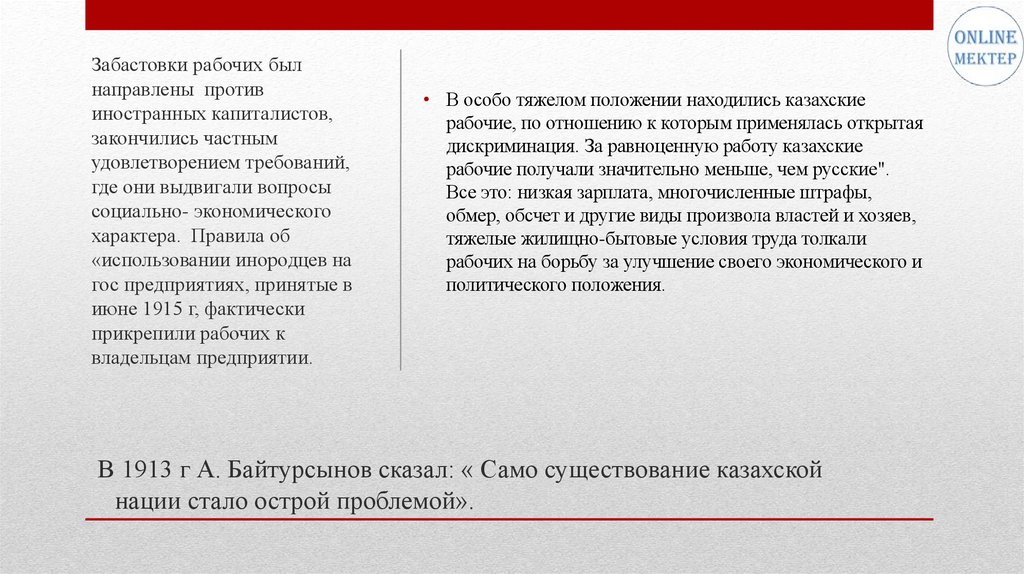 В 1913 г А. Байтурсынов сказал: « Само существование казахской