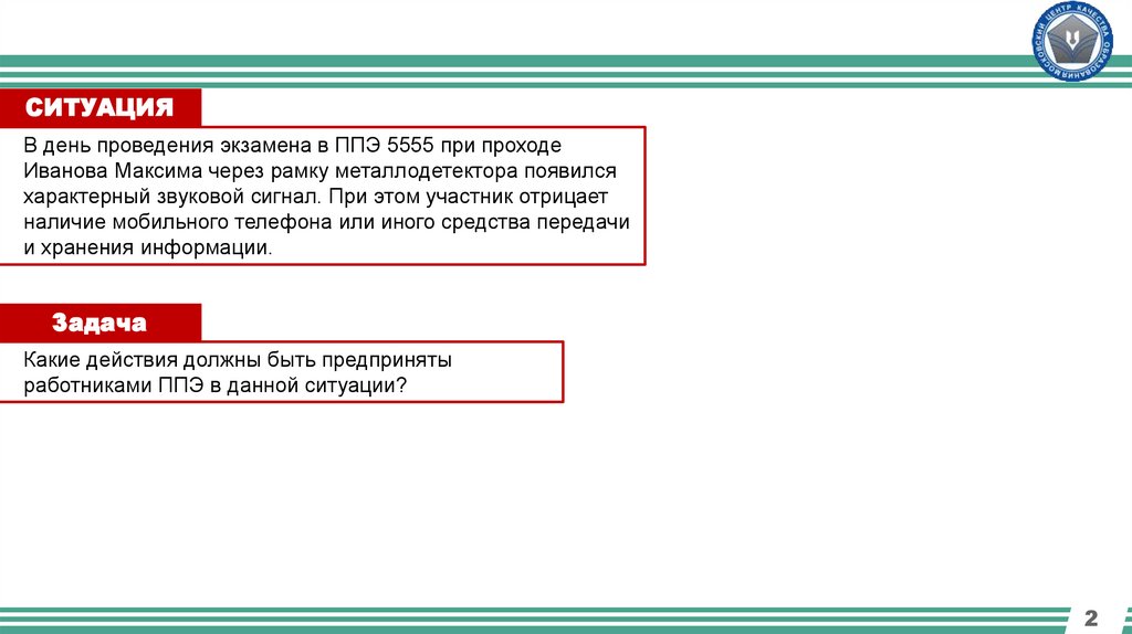 СИТУАЦИЯВ день проведения экзамена в ППЭ 5555 при проходе