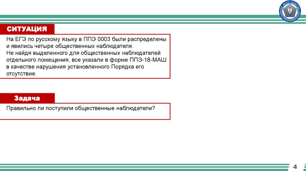 СИТУАЦИЯНа ЕГЭ по русскому языку в ППЭ 0003 были распределены