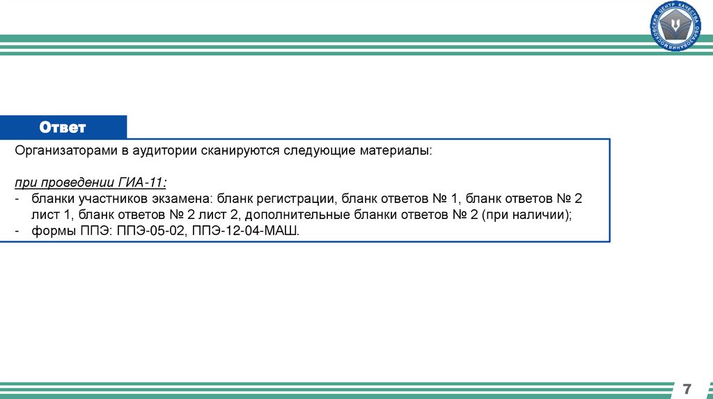 ОтветОрганизаторами в аудитории сканируются следующие материалы: