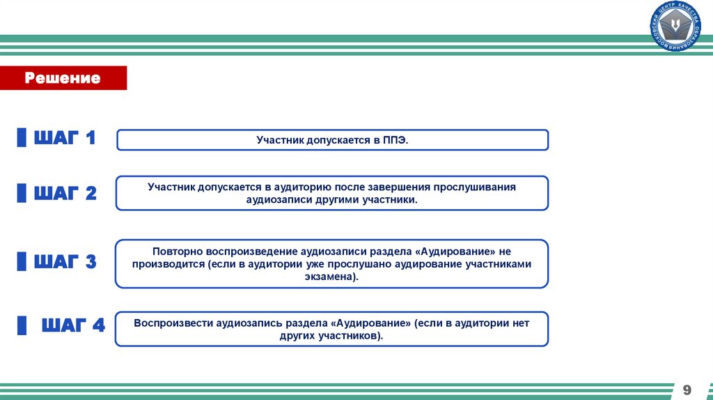 Воспроизвести аудиозапись раздела «Аудирование» (если в аудитории нет
