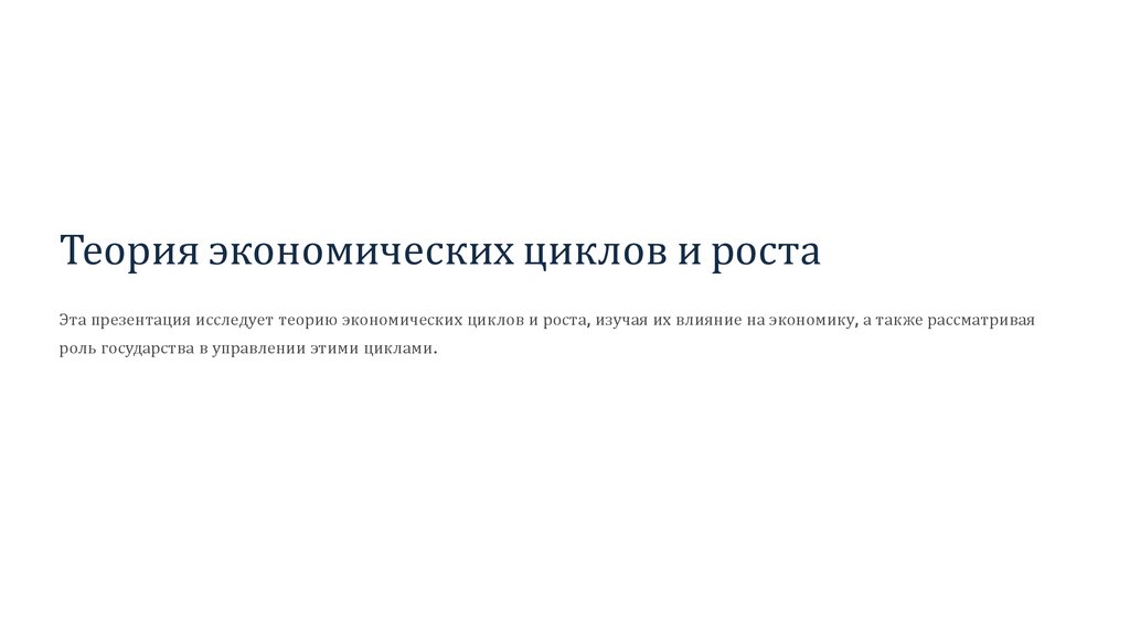 Теория экономических циклов и ростаЭта презентация исследует теорию экономических циклов и роста, изучая их влияние на экономику, а также рассматривая