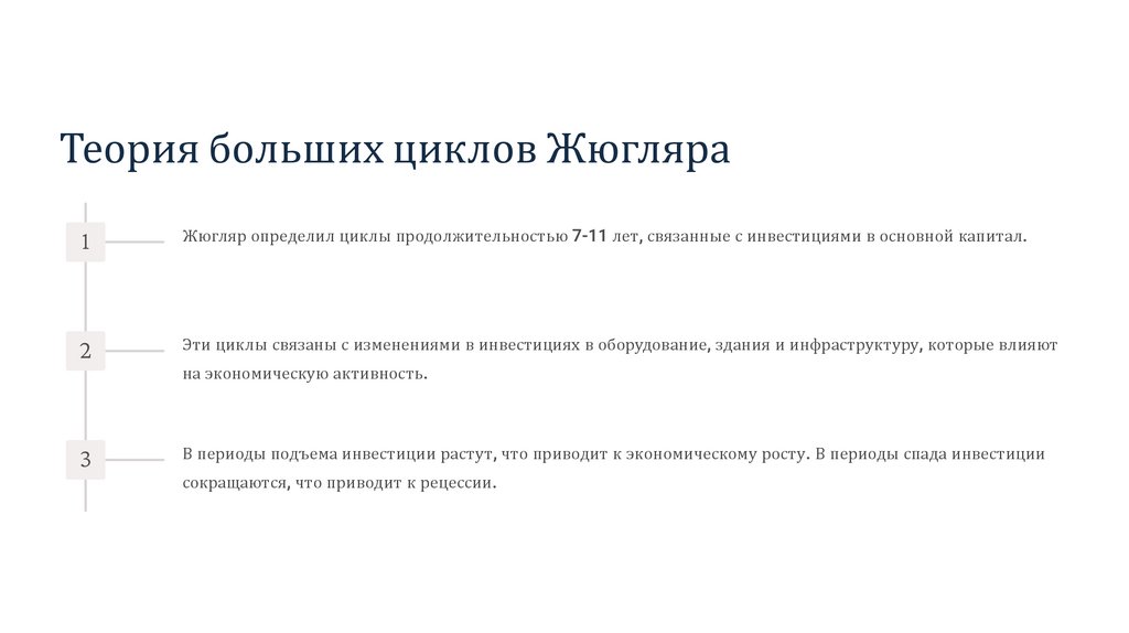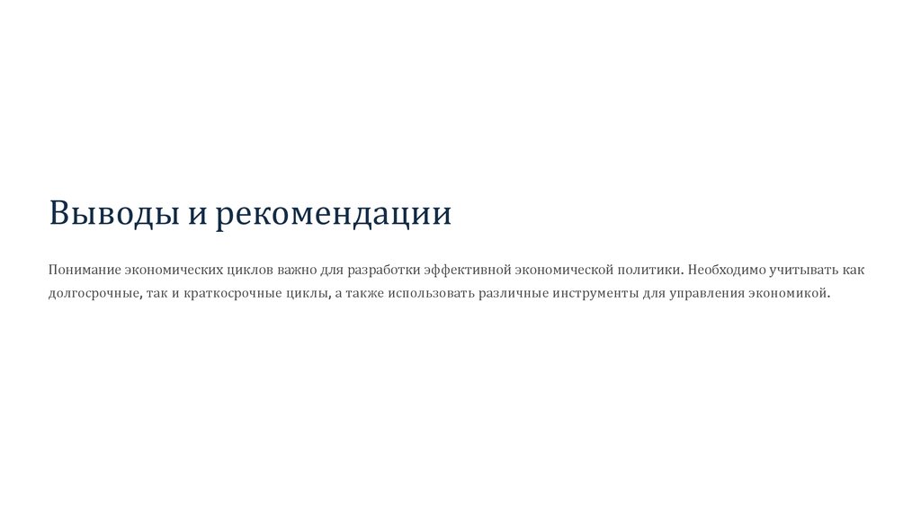 Выводы и рекомендацииПонимание экономических циклов важно для разработки эффективной экономической политики. Необходимо учитывать как