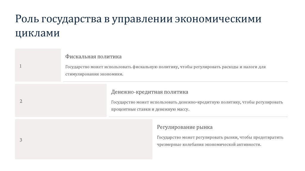 долгосрочные, так и краткосрочные циклы, а также использовать различные инструменты для управления экономикой.
