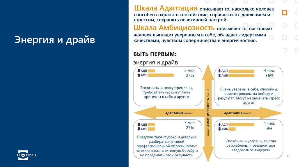 Шкала Адаптация описывает то, насколько человекспособен сохранять спокойствие, справляться с давлением и