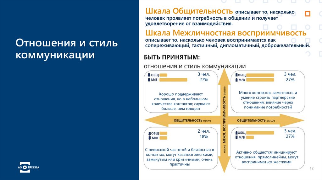 Шкала Общительность описывает то, насколькочеловек проявляет потребность в общении и получает