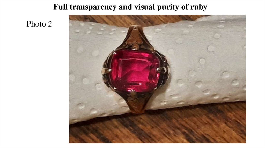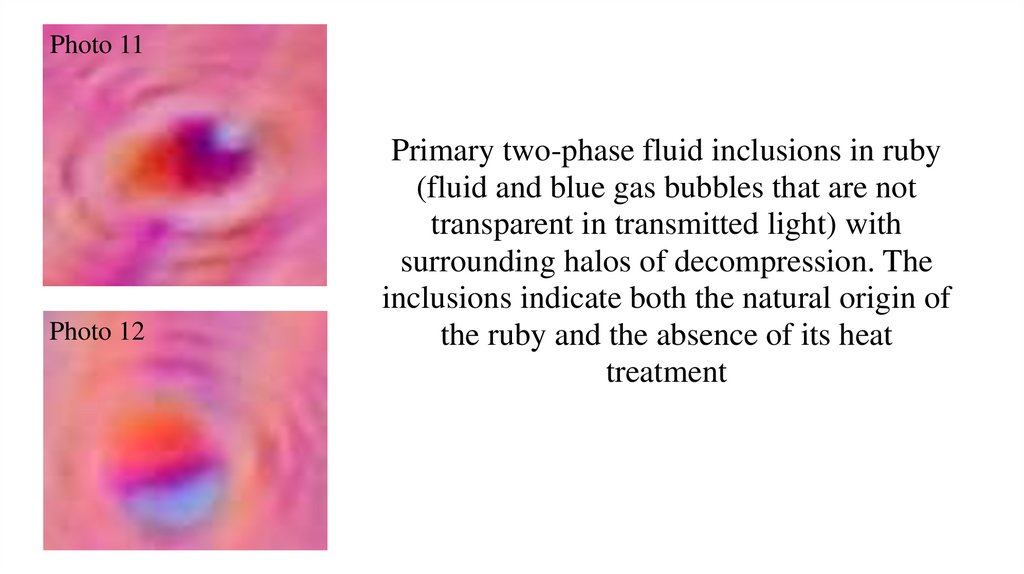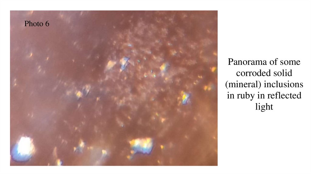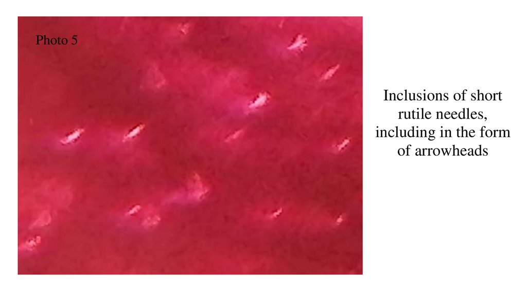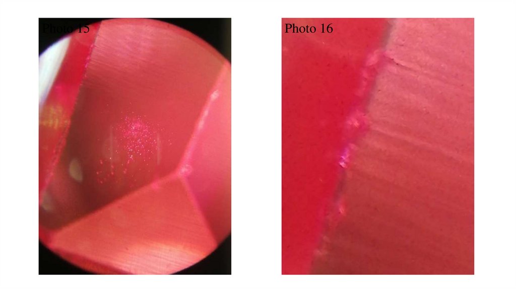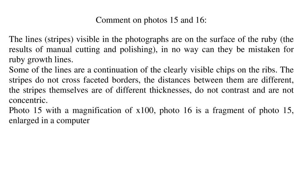 Comment on photos 15 and 16:The lines (stripes) visible in the photographs are on the surface of the ruby (the
