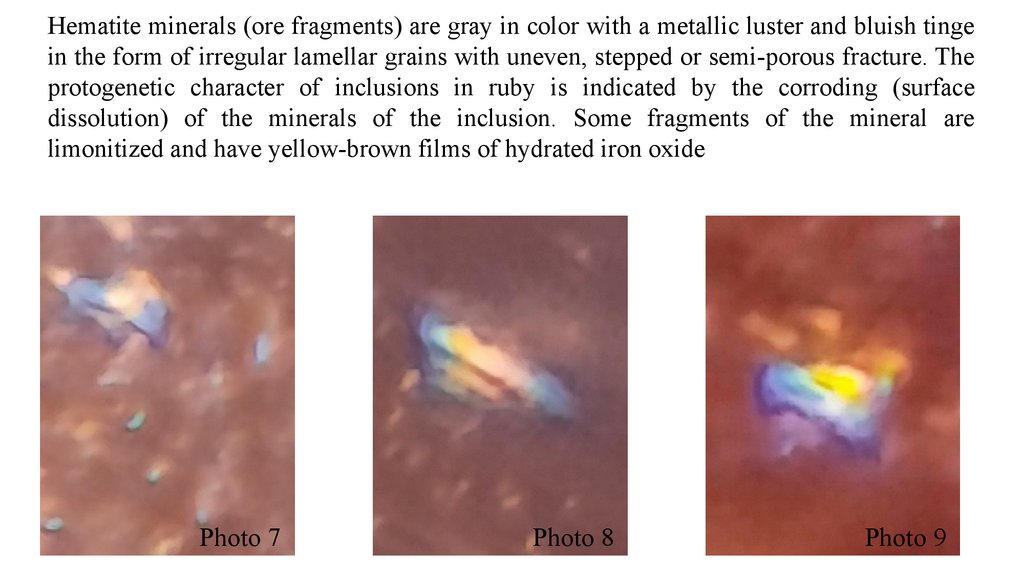 protogenetic character of inclusions in ruby is indicated by the corroding (surface
